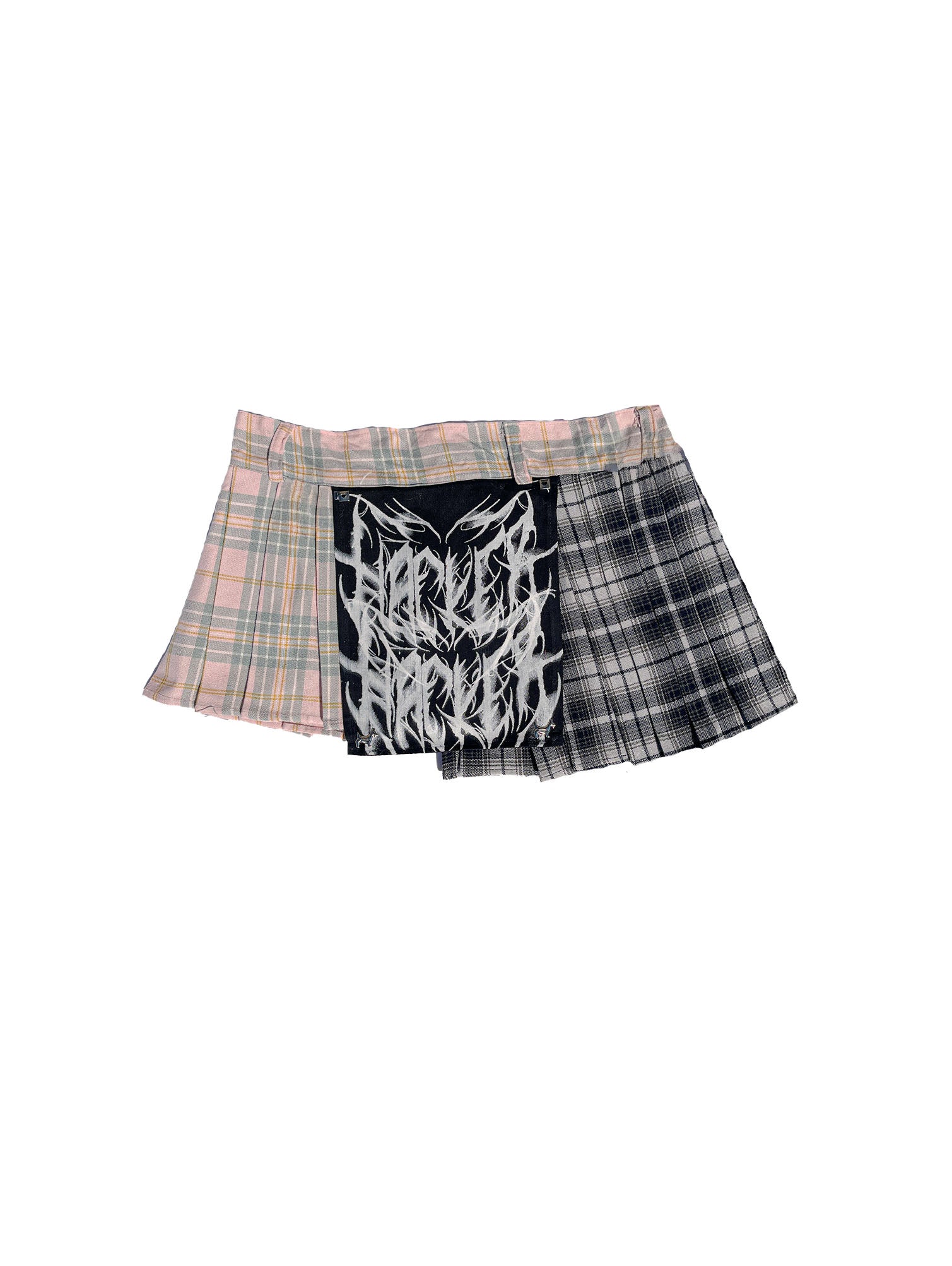 Falda escocesa rosa, con un cuadro negro con estampado, falda para tus looks más rebeldes 🖤🦢.