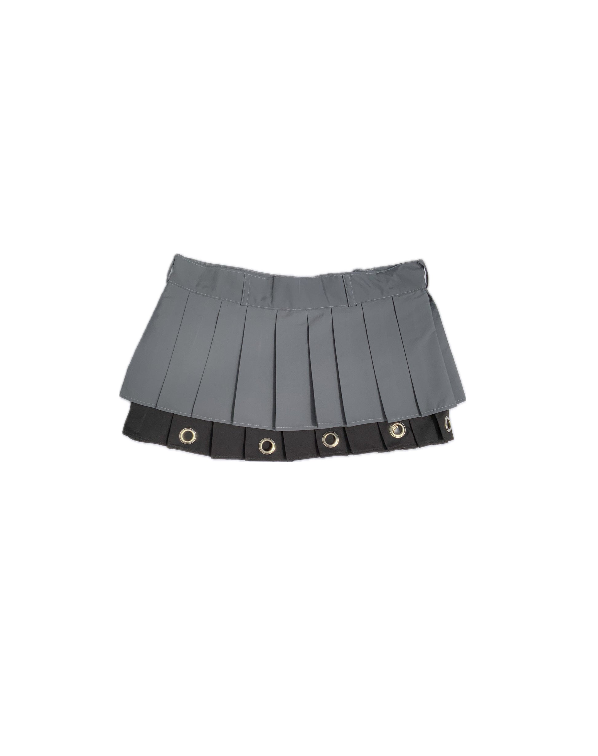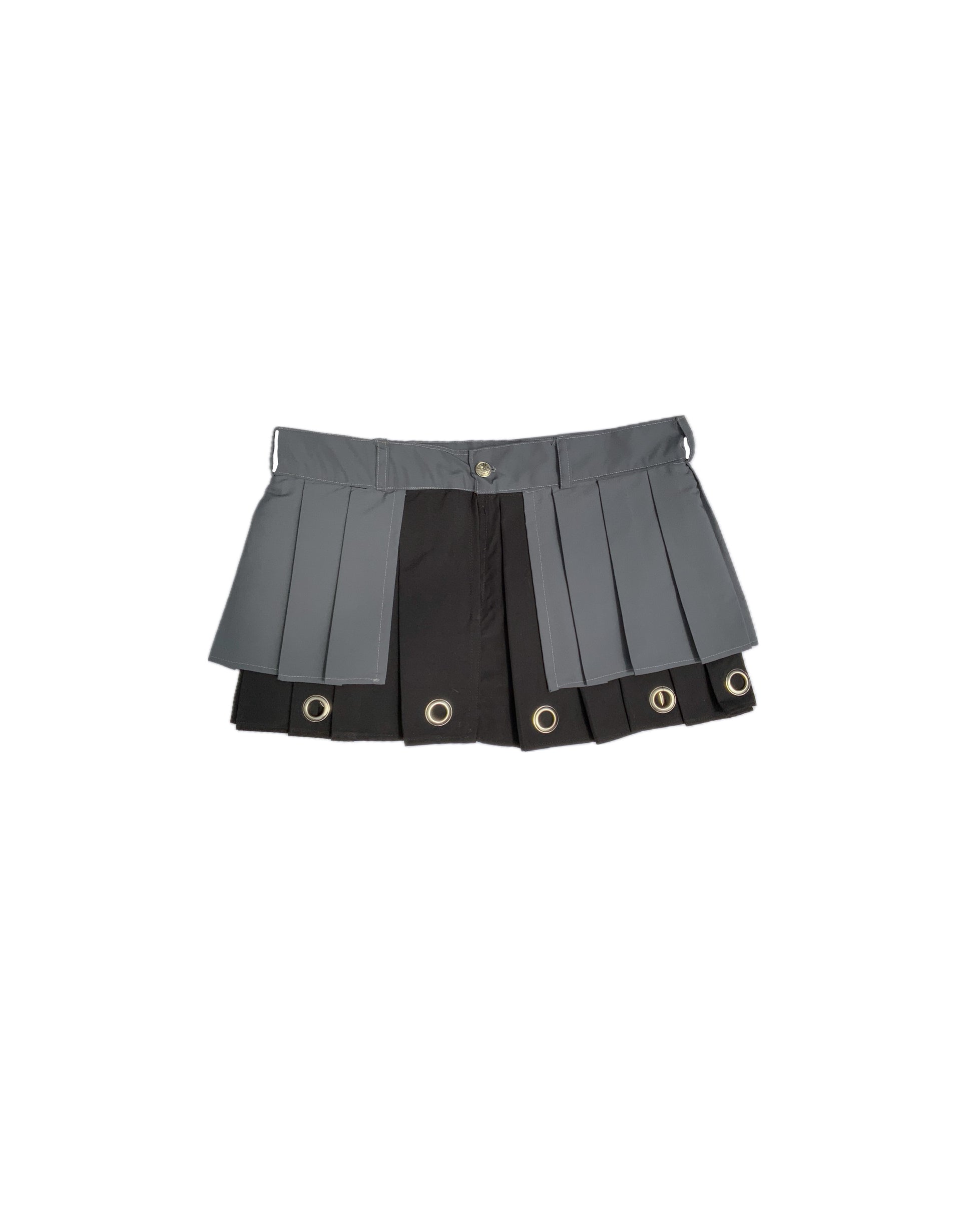 Falda corta de dos capas tableada, arriba negra y abajo gris con ojillos, luce alternativa, cómoda y con estilo. 🖤🦢🌻